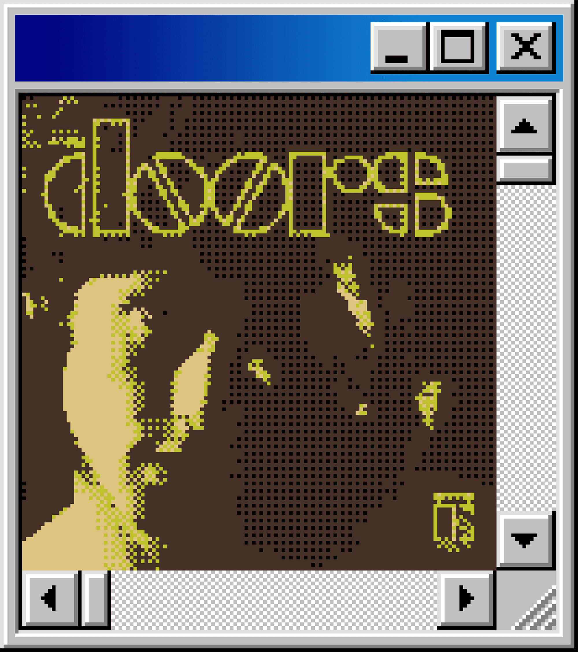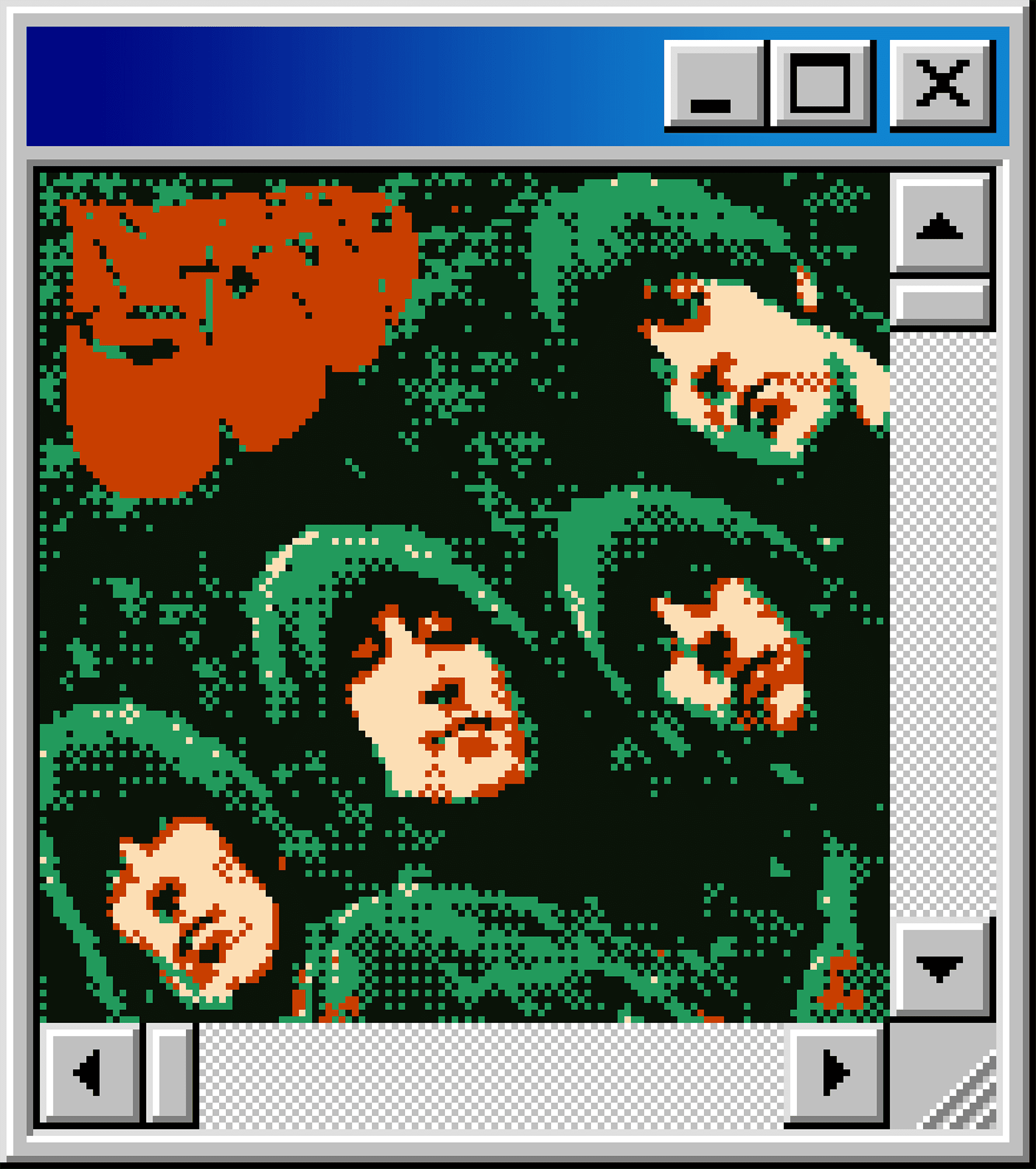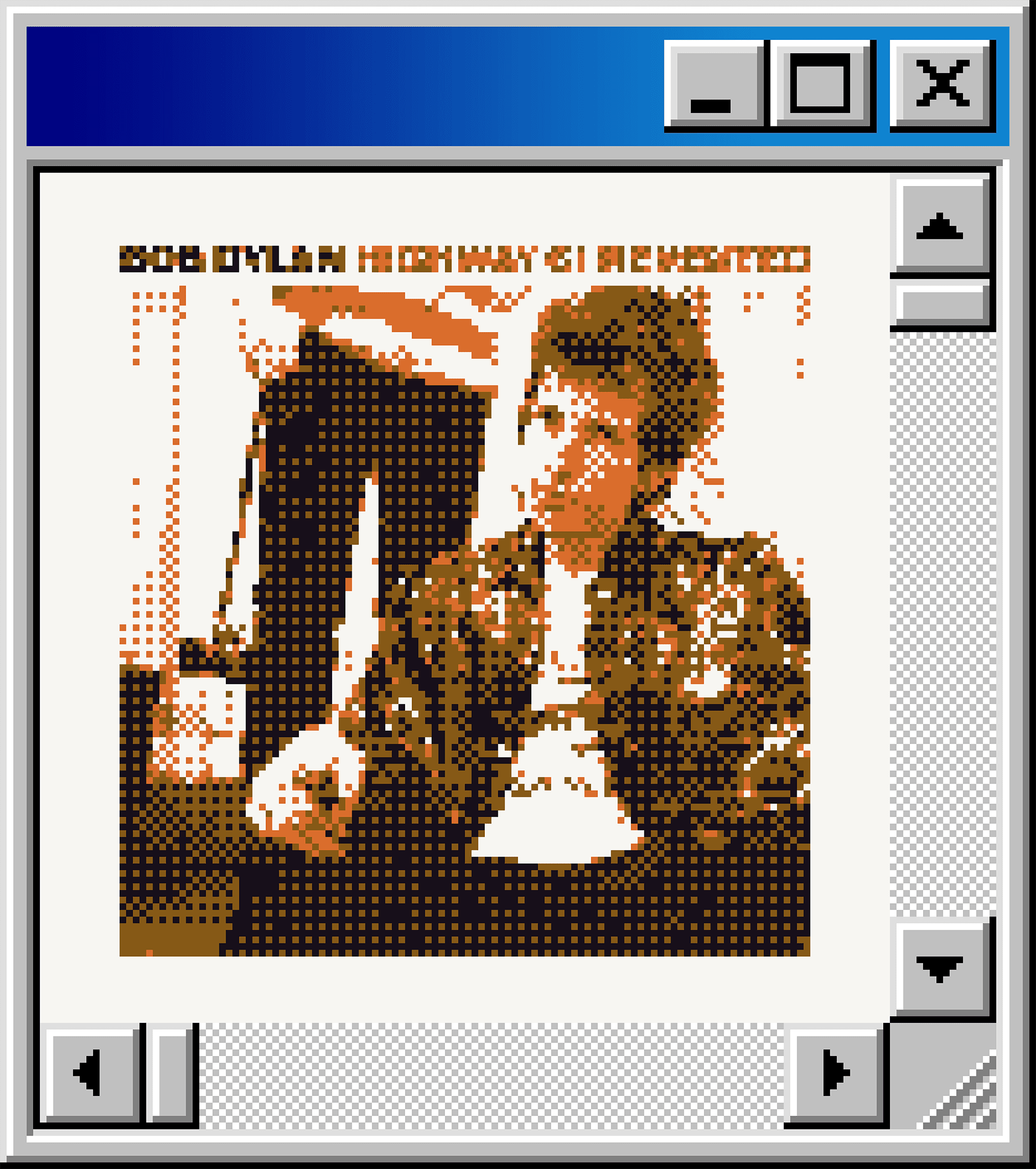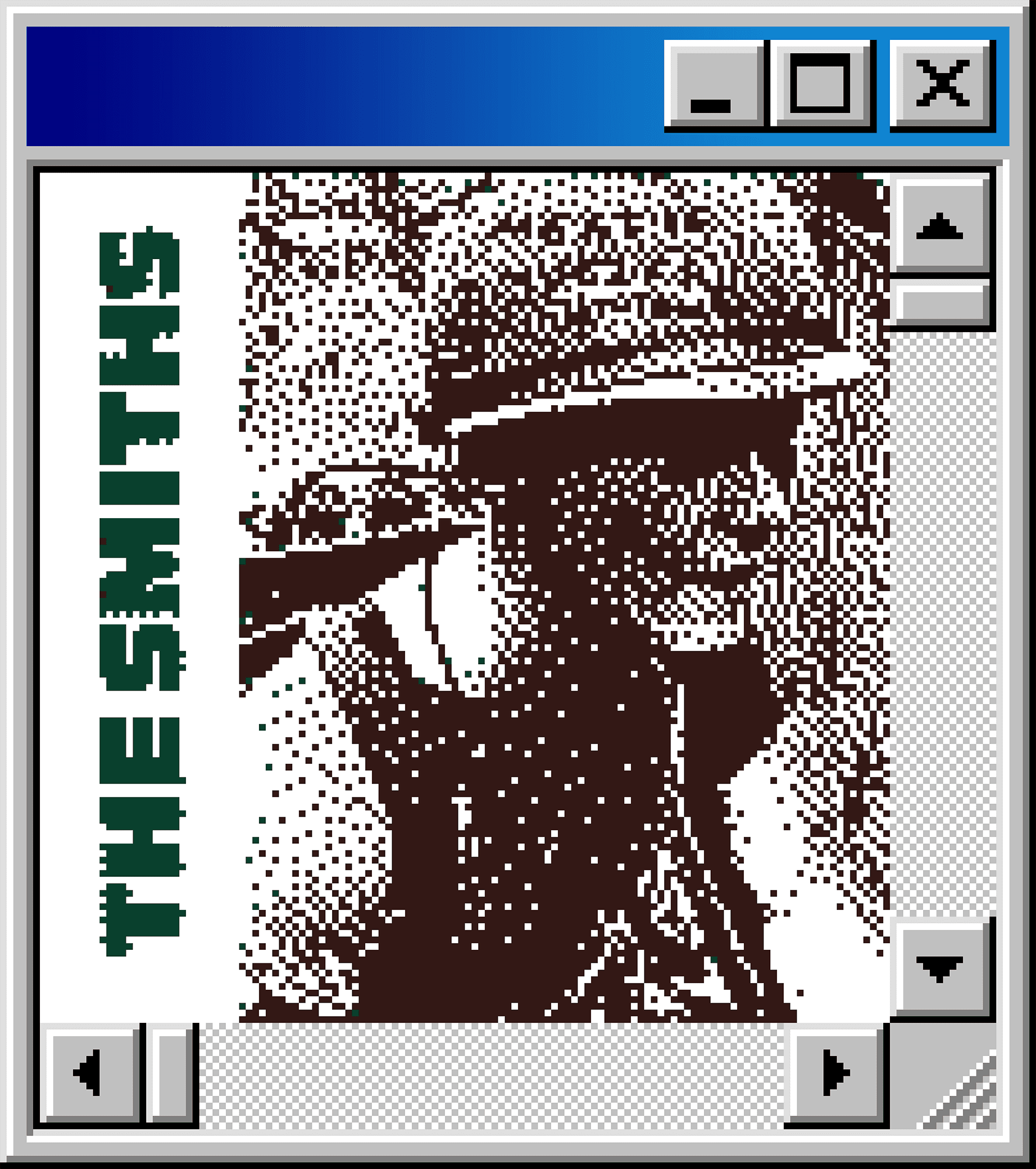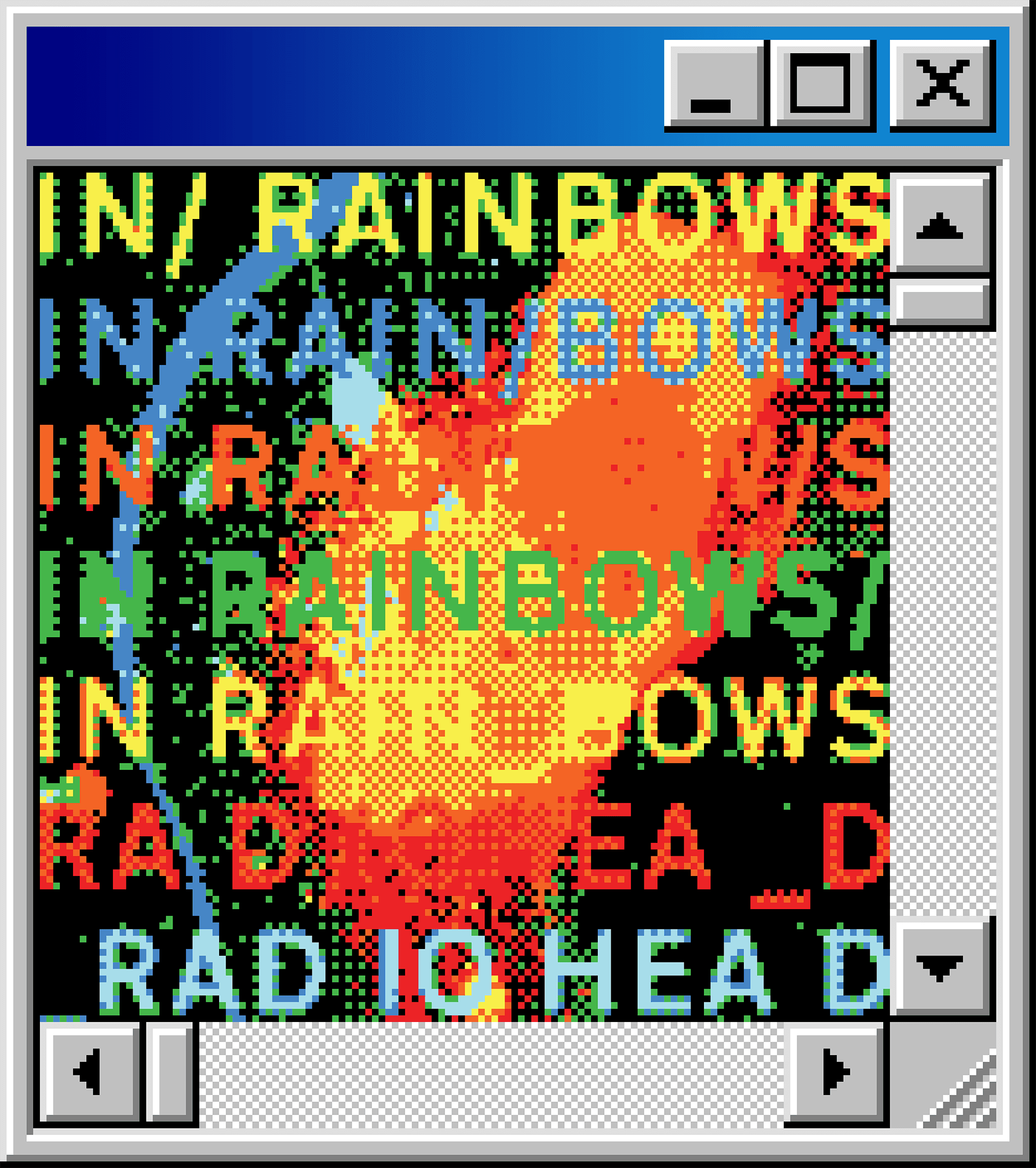 Another experiment in minimalism, indulging my fascination with dithering. Some of the most famous album covers, reduced to 128x128 pixels, a color palette of to 3-5 colors, using ordered dithering. Then framing each image in Windows 98 chrome to simulate the experience of downloading sketchy MP3's to your family computer in the late 90's.