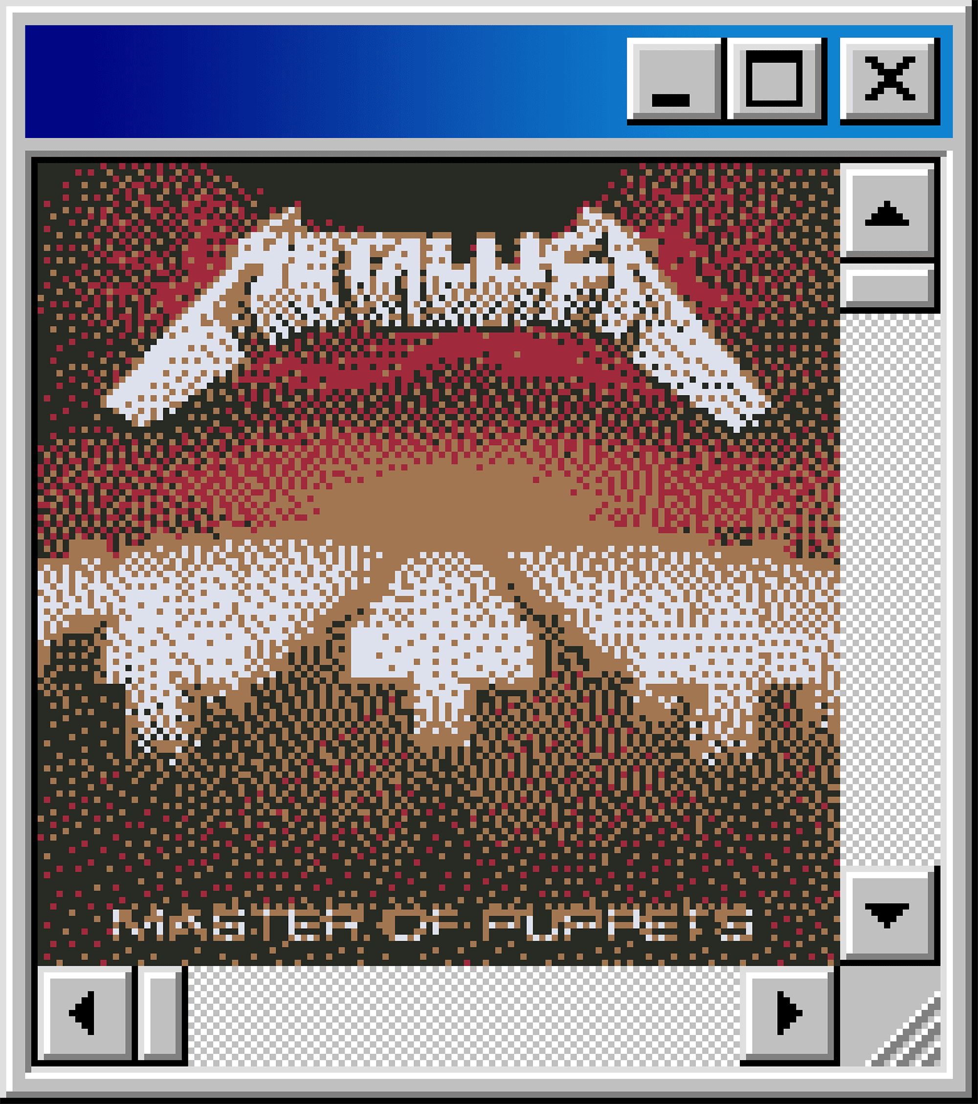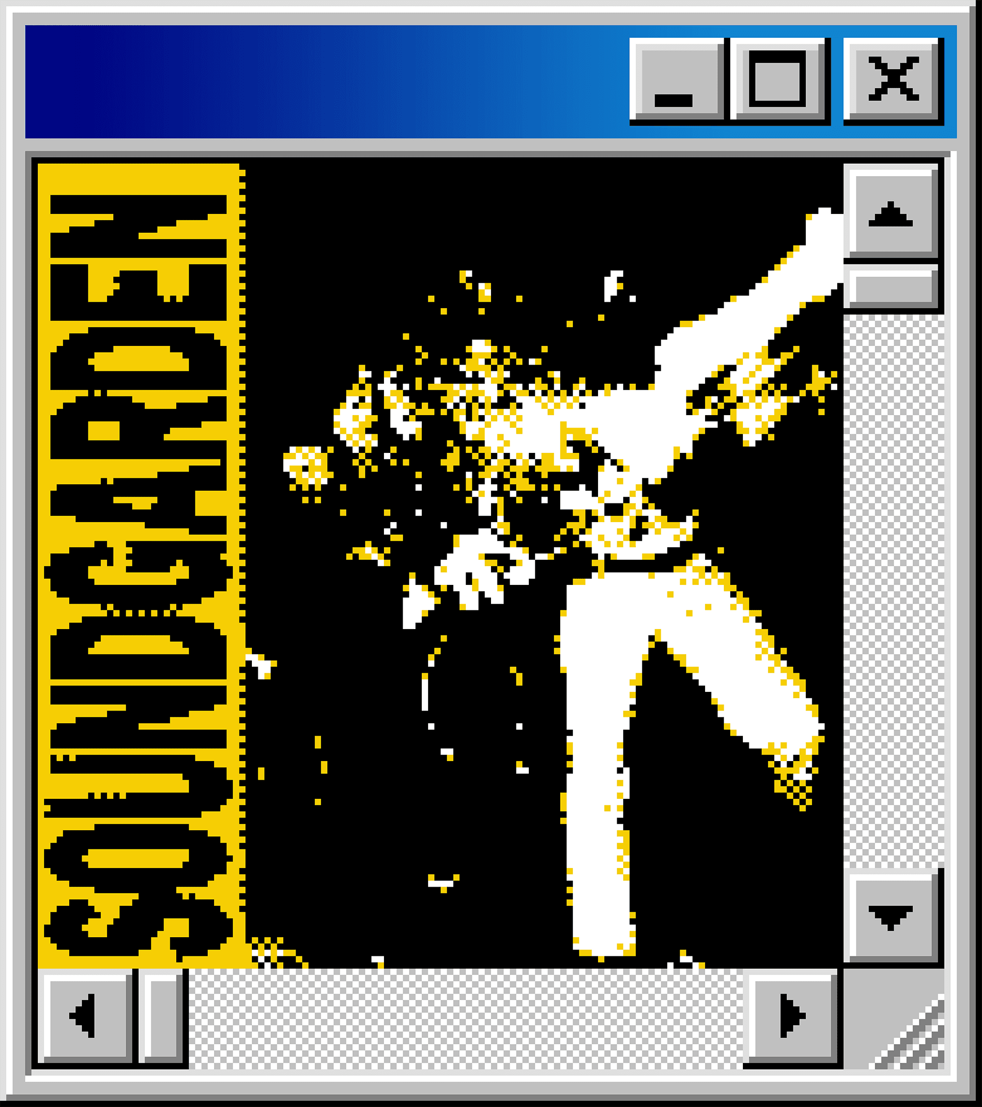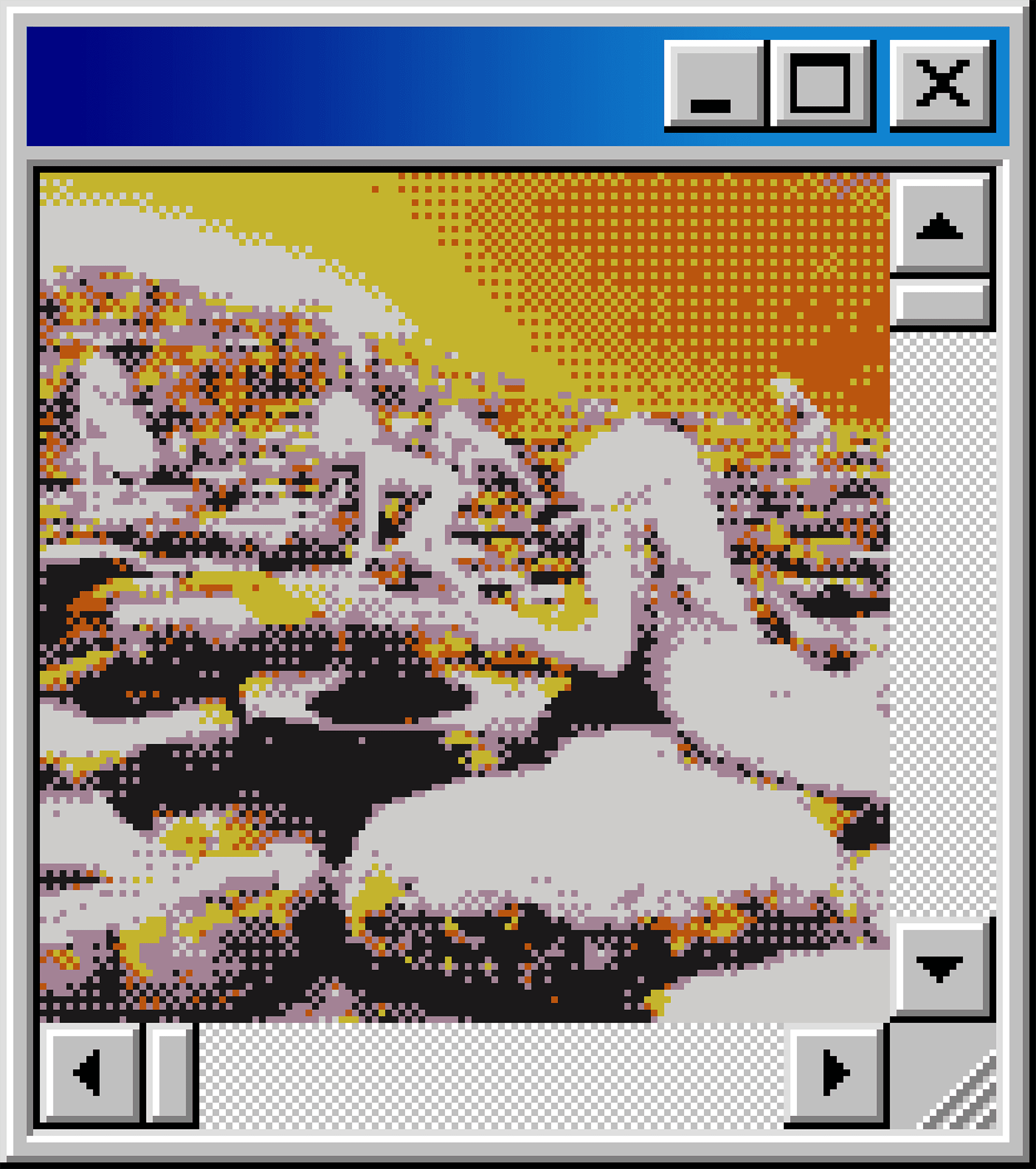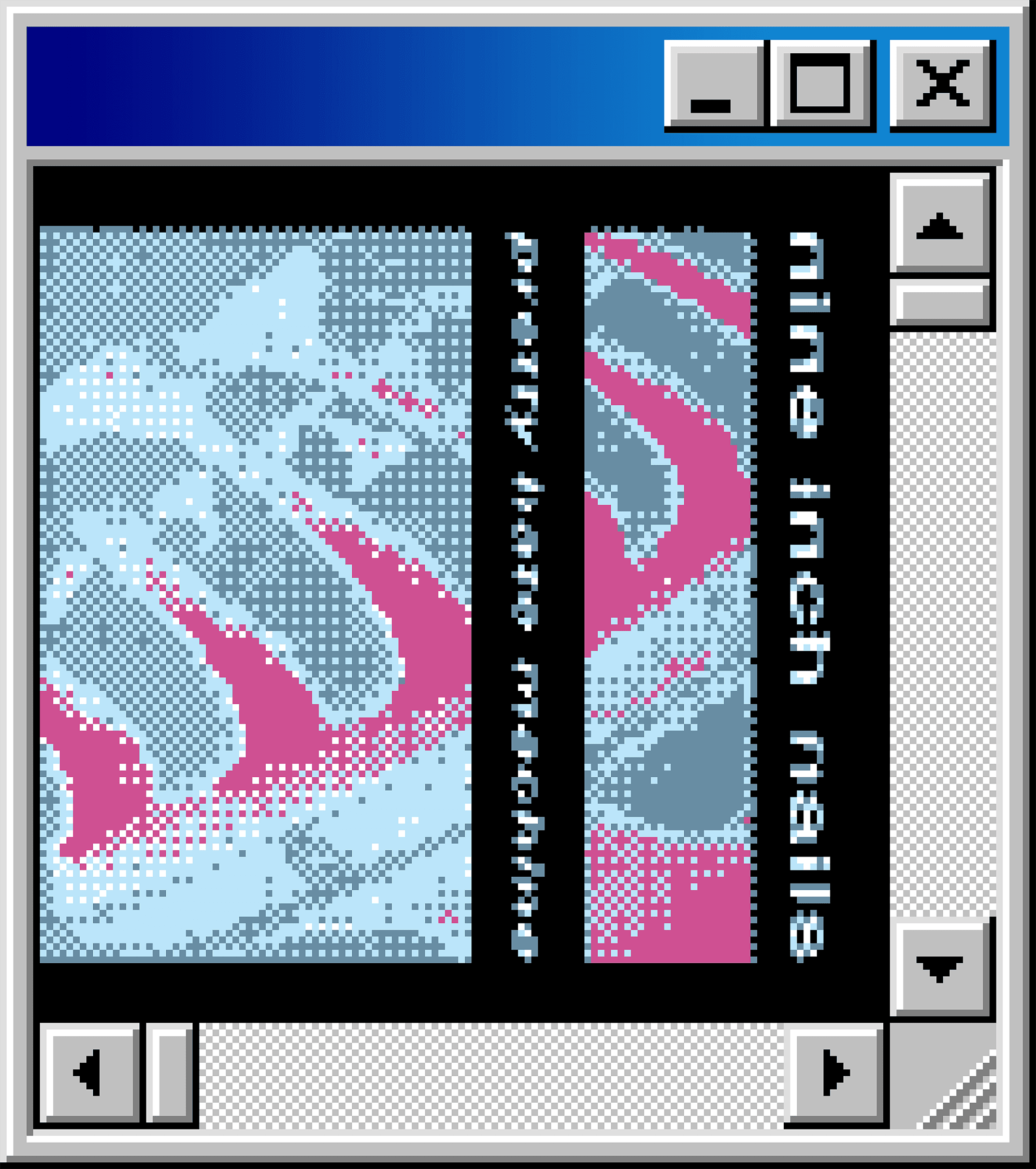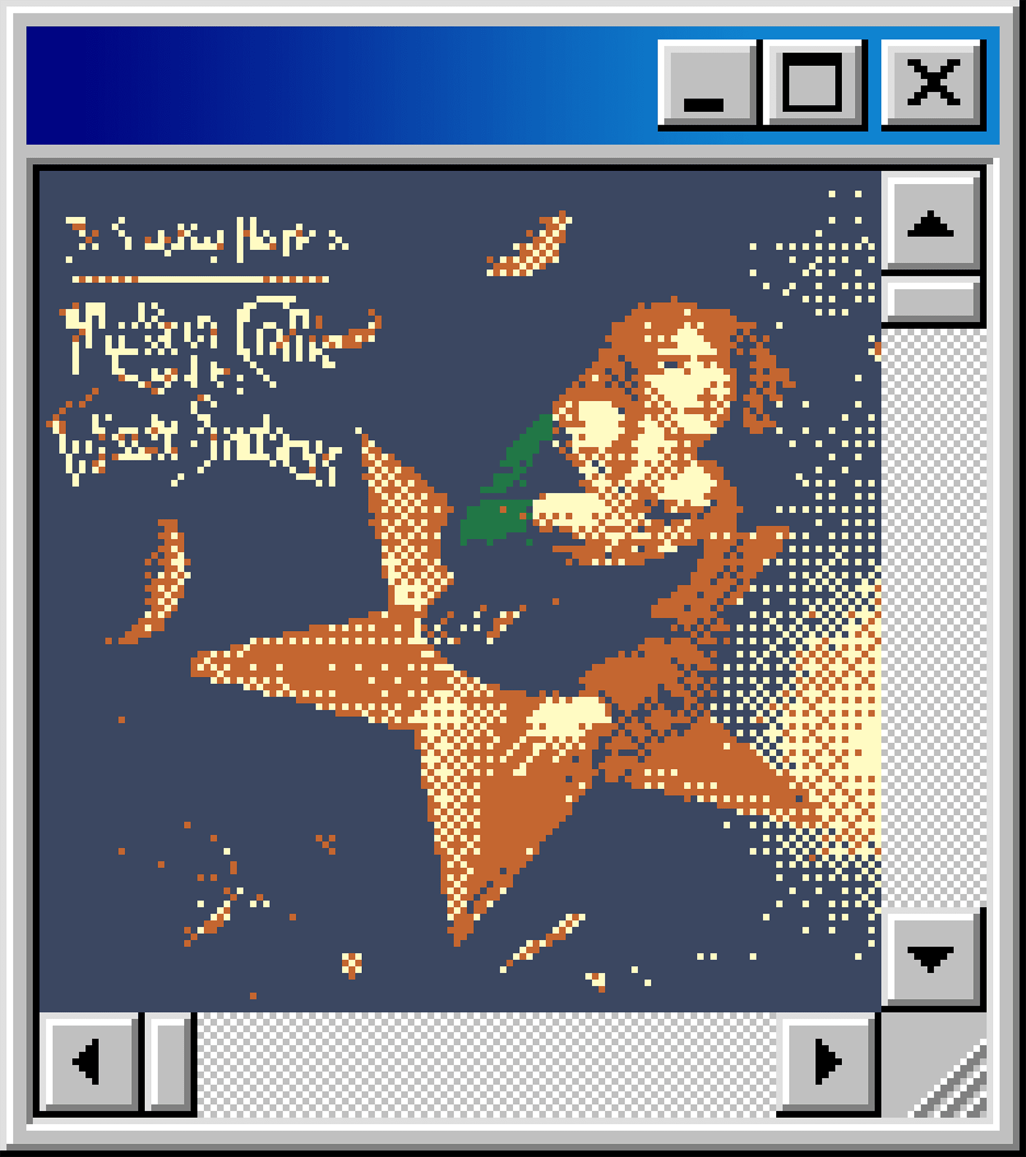 Another experiment in minimalism, indulging my fascination with dithering. Some of the most famous album covers, reduced to 128x128 pixels, a color palette of to 3-5 colors, using ordered dithering. Then framing each image in Windows 98 chrome to simulate the experience of downloading sketchy MP3's to your family computer in the late 90's.