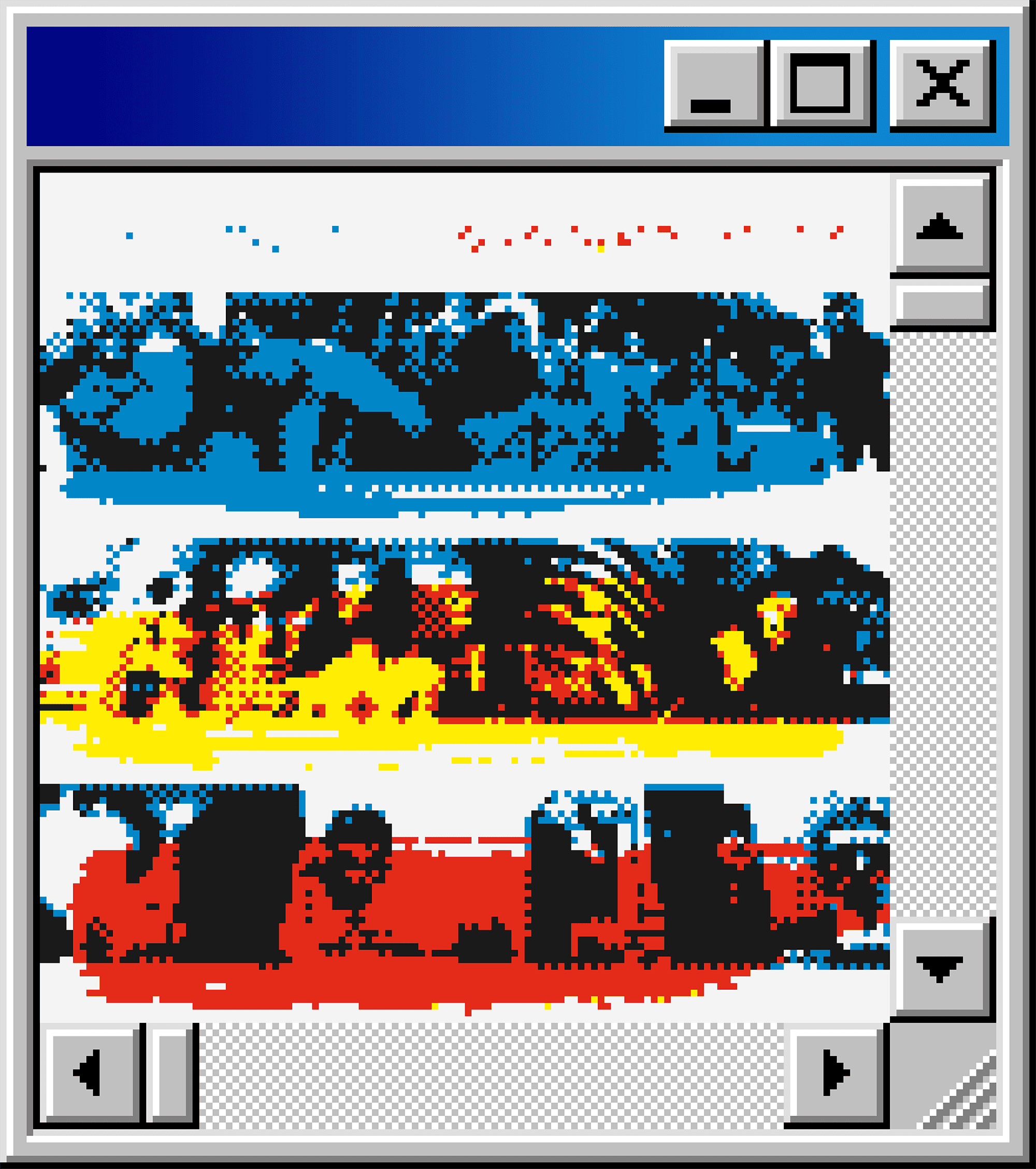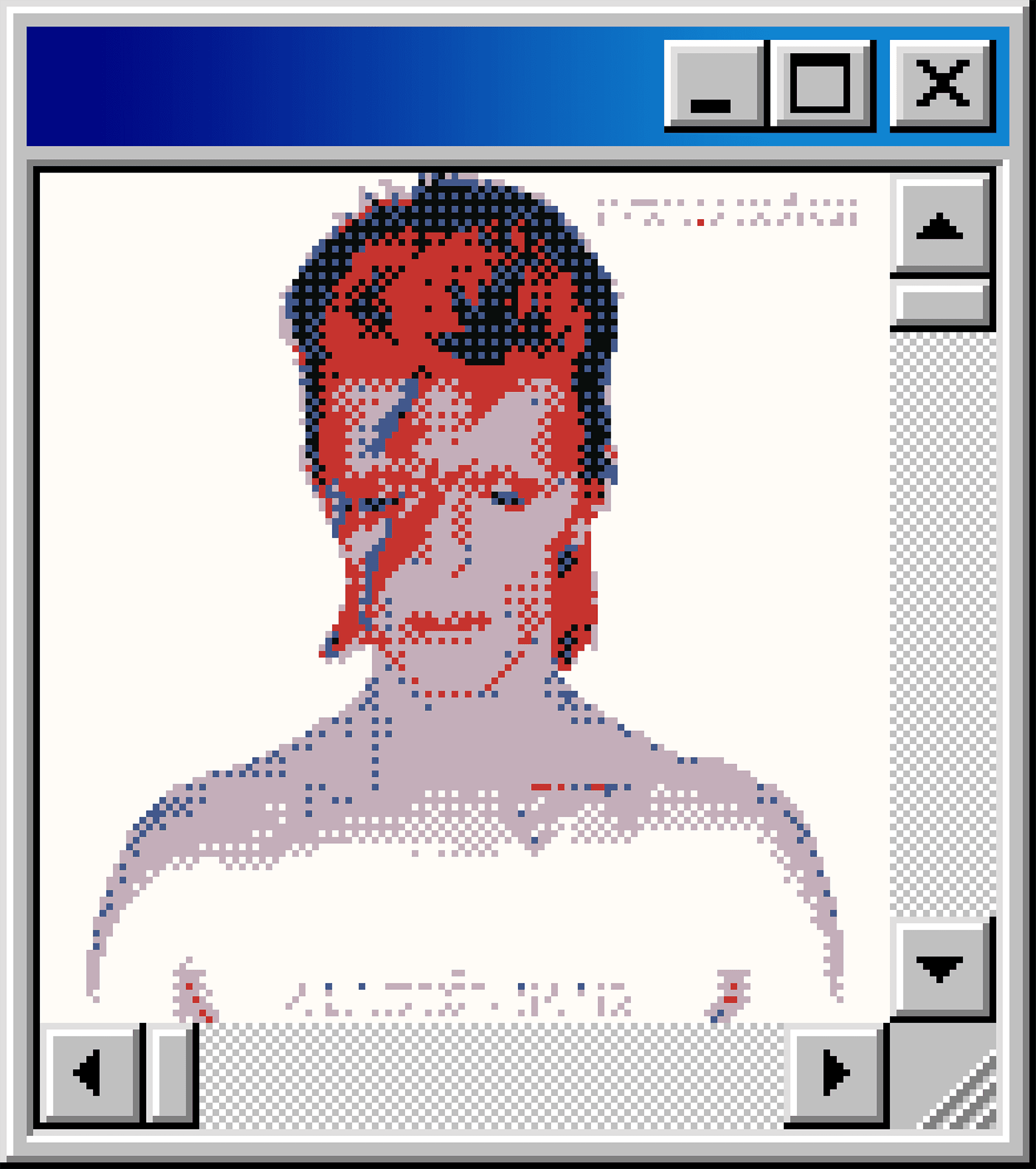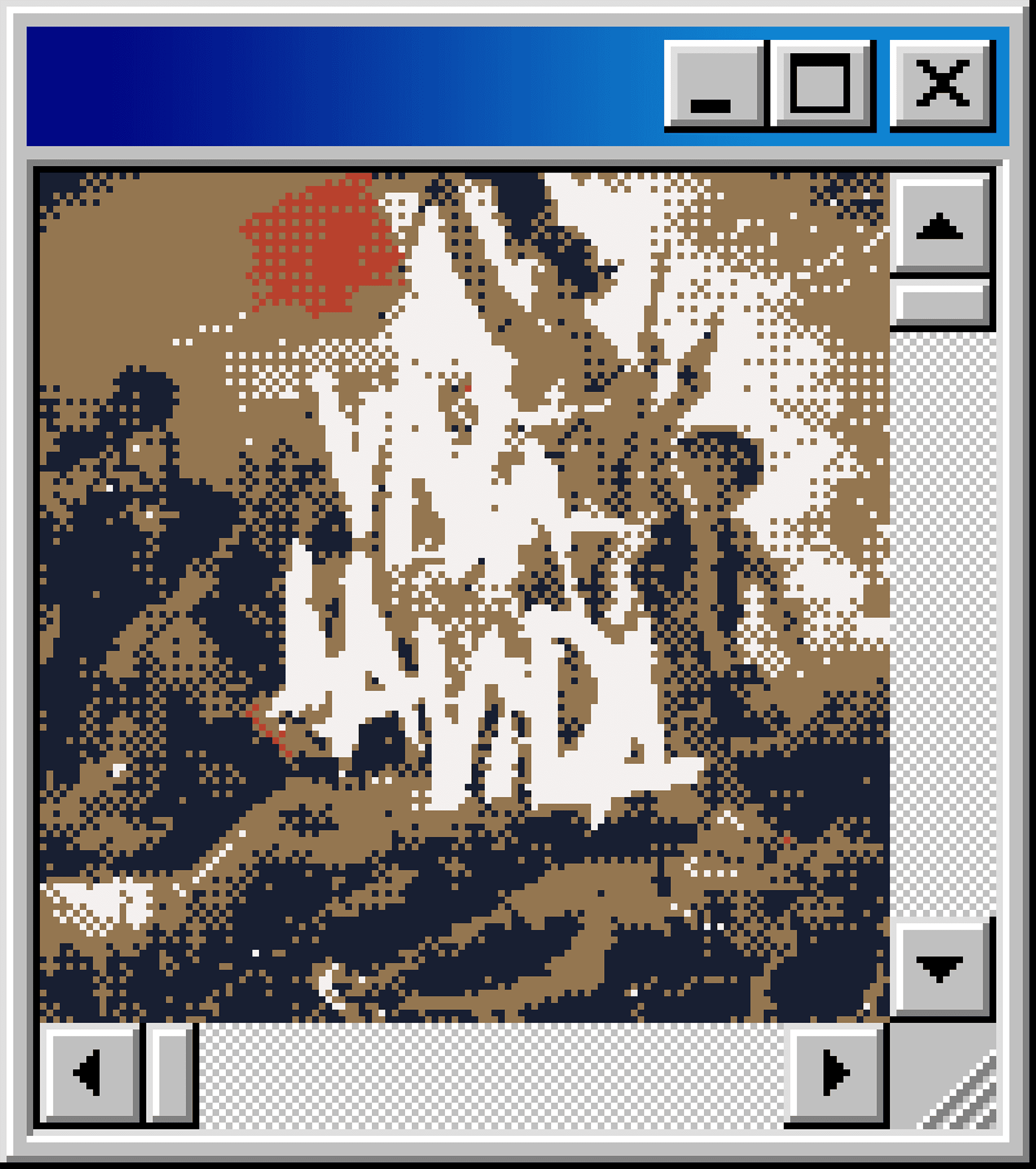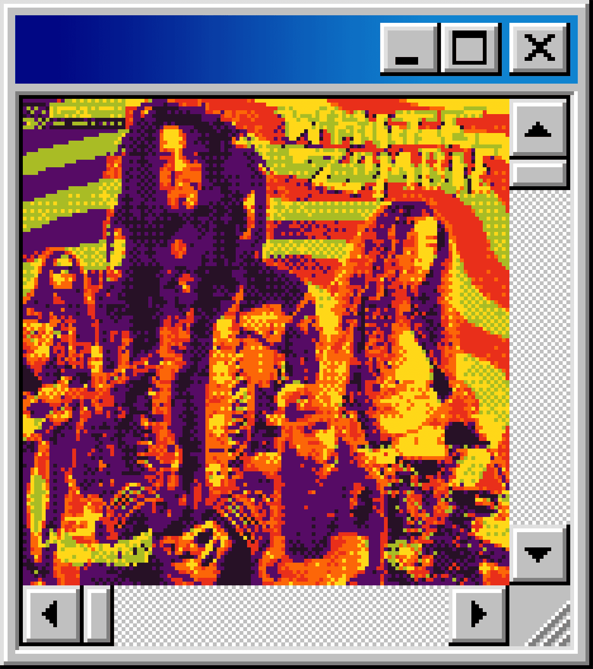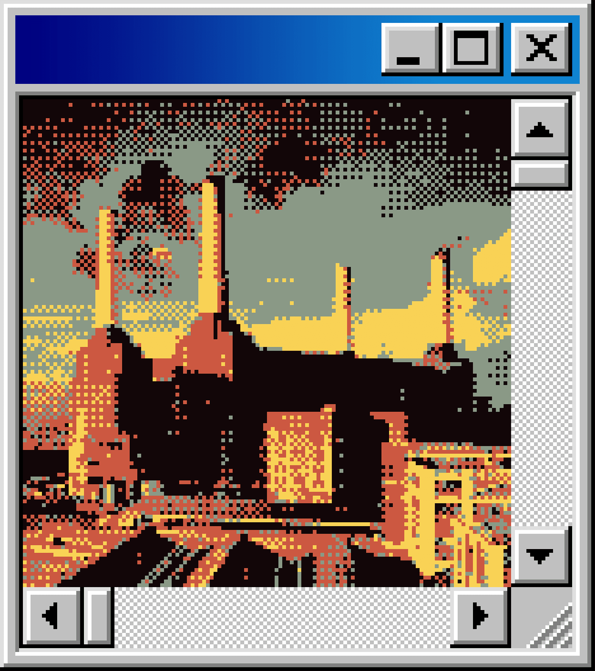 Another experiment in minimalism, indulging my fascination with dithering. Some of the most famous album covers, reduced to 128x128 pixels, a color palette of to 3-5 colors, using ordered dithering. Then framing each image in Windows 98 chrome to simulate the experience of downloading sketchy MP3's to your family computer in the late 90's.