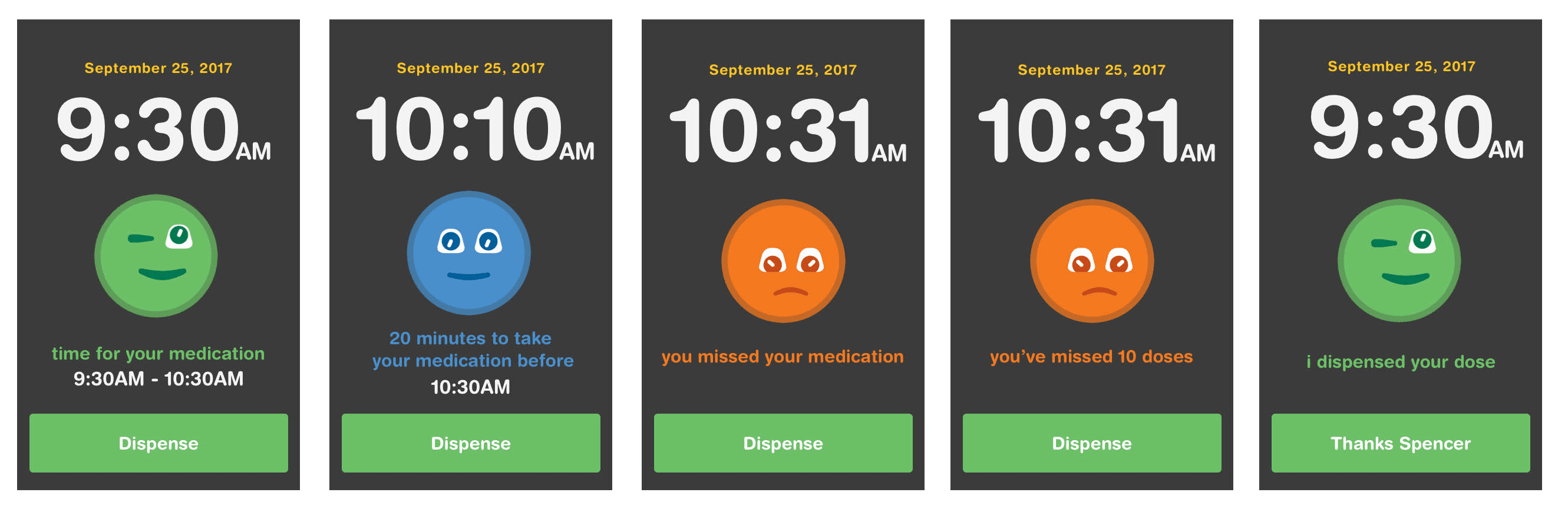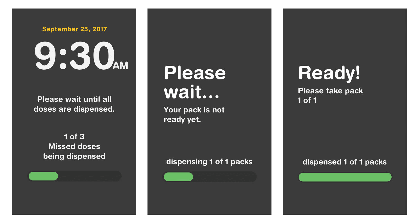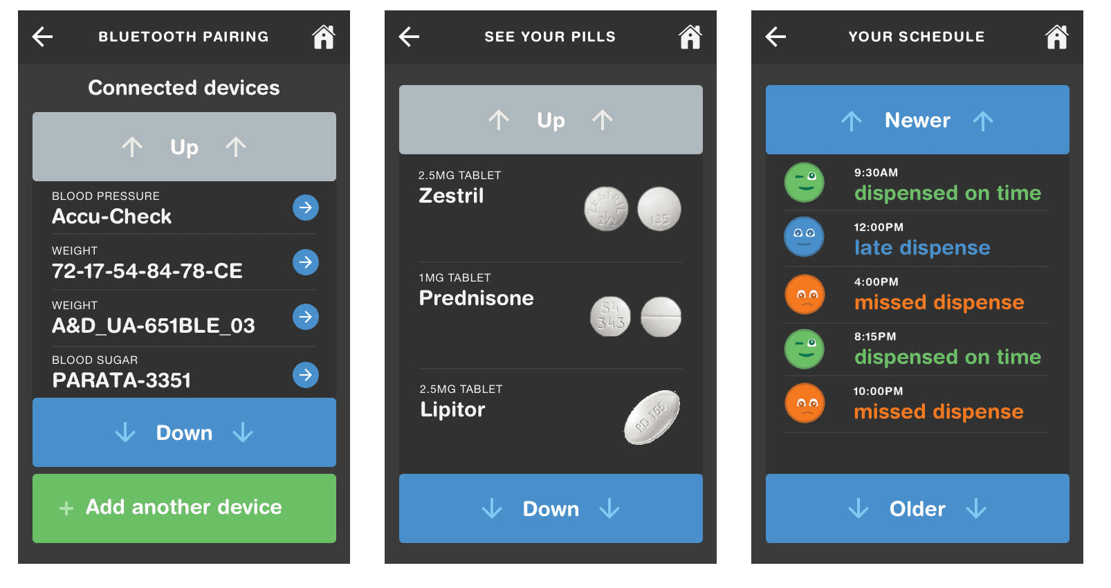 I personally designed the core UX patterns for the device's medication confirmation flow, setting the standard for the rest of the UI library.