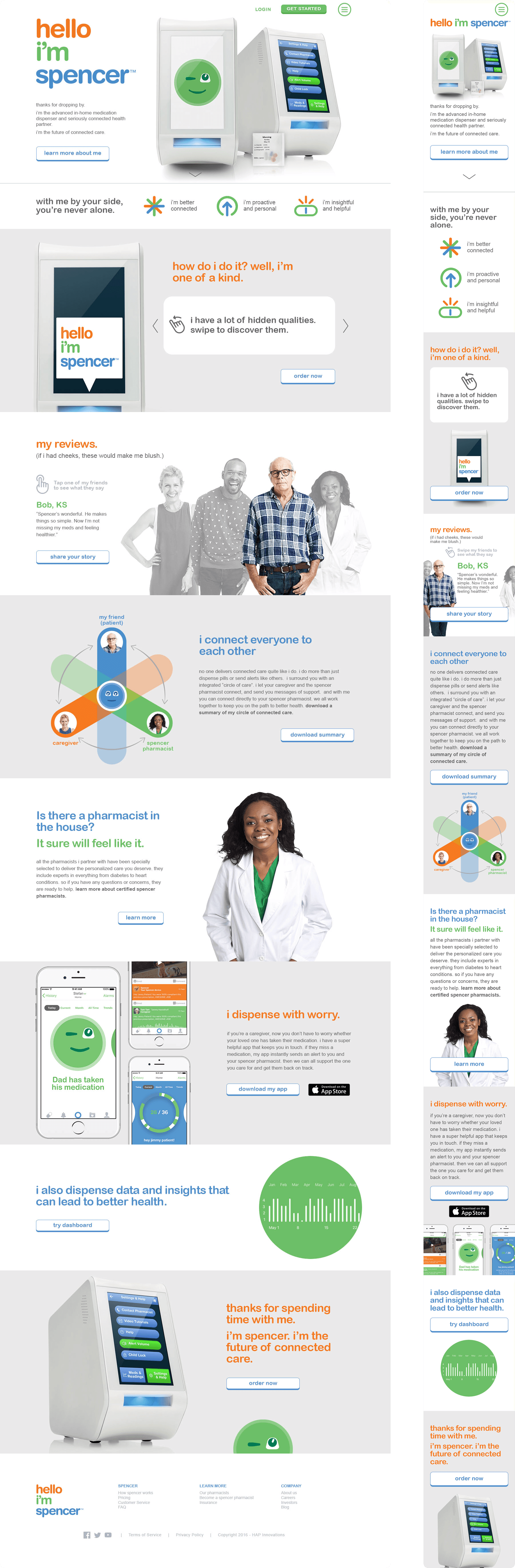 Spencer is more than a medication dispenser; it’s a dedicated companion for the elderly, designed to ensure independence through compliance. I led the creative team in architecting a dual-pronged launch: a high-conversion marketing website to build market awareness and a complete UX/UI overhaul of the device interface itself—transforming a complex, engineer-led system into an accessible, brand-aligned product experience.