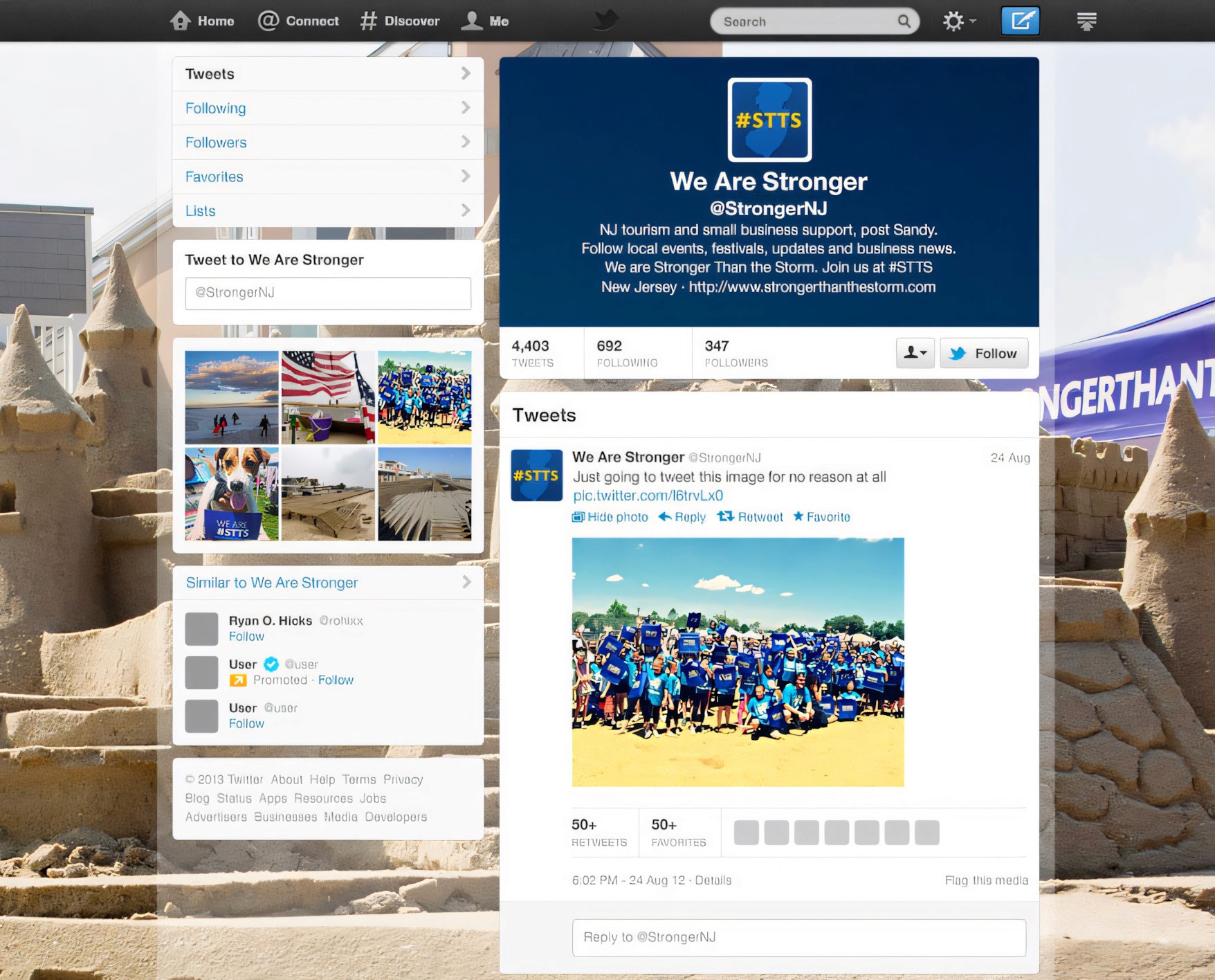 In the wake of Hurricane Sandy, New Jersey needed more than a recovery effort—it needed a narrative shift. I led the creative team in architecting "Stronger Than The Storm," a massive 360° campaign that transformed a story of disaster into one of resilience, utilizing a data-driven web hub and a summer-long series of experiential activations to prove the Shore was "open for business."
