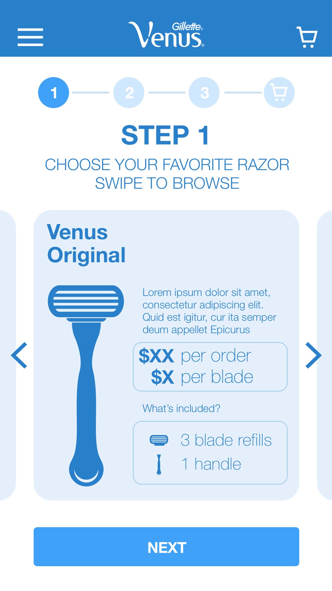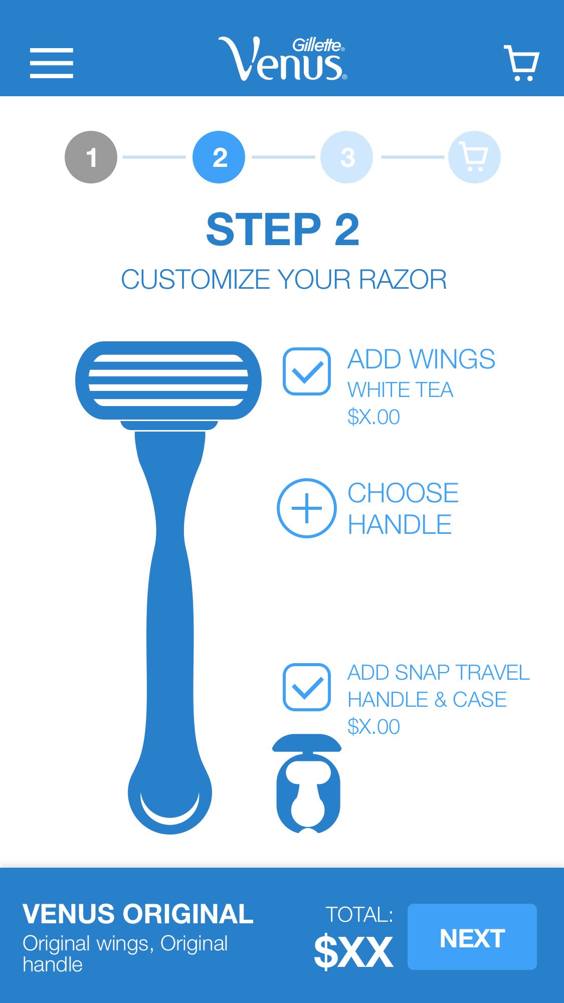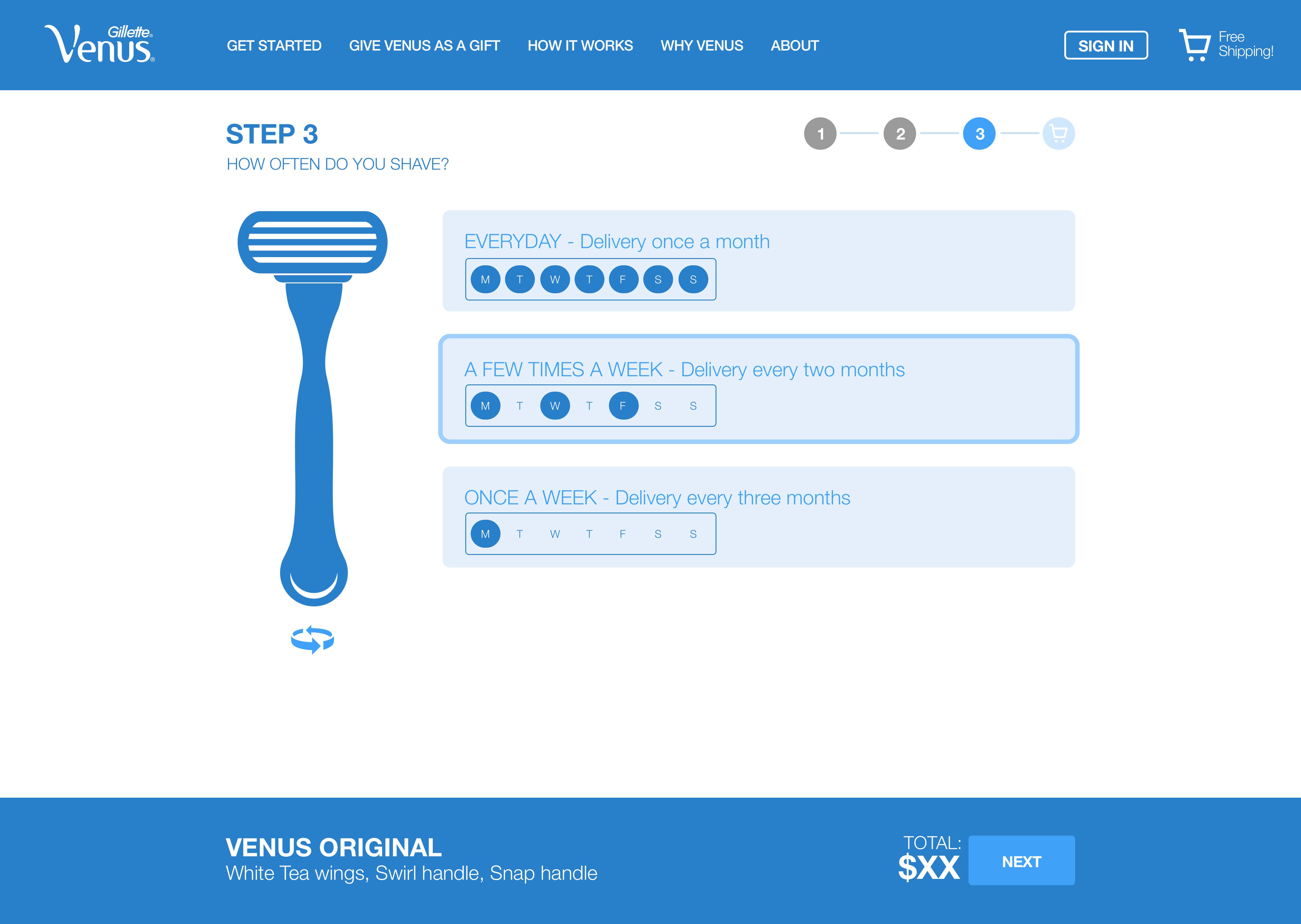 Developed a step-by-step modular flow (Select Refills → Choose Handle → Set Frequency) to prevent cognitive overload.