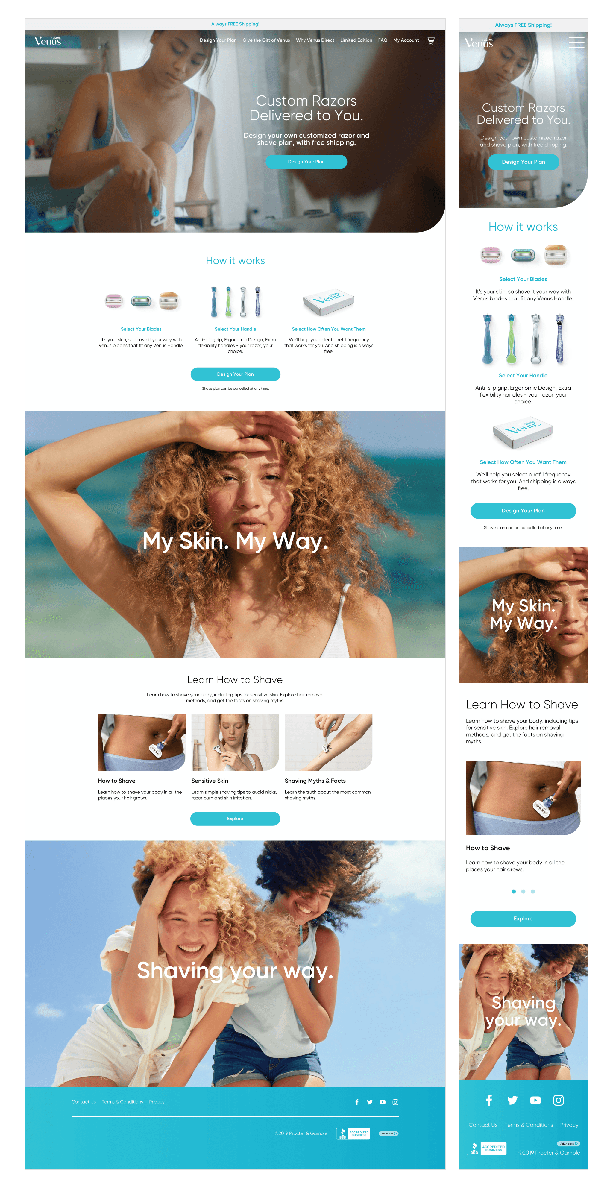 To support a global brand refresh, Venus needed to evolve from a traditional retail presence to a direct-to-consumer (DTC) powerhouse. I led the UX strategy and UI redesign to create an app-like subscription journey that reduced user friction and modernized the brand's digital identity.